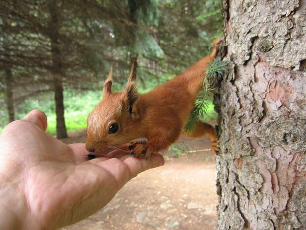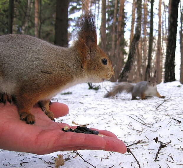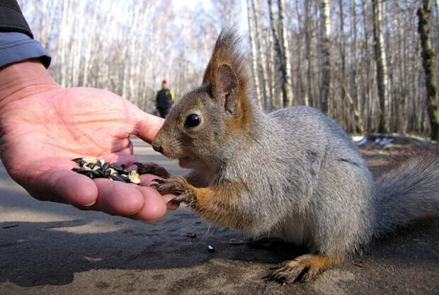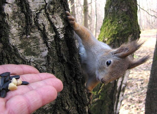Белки-попрошайки...