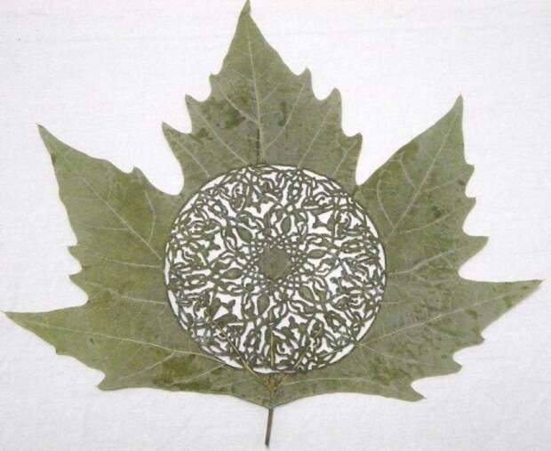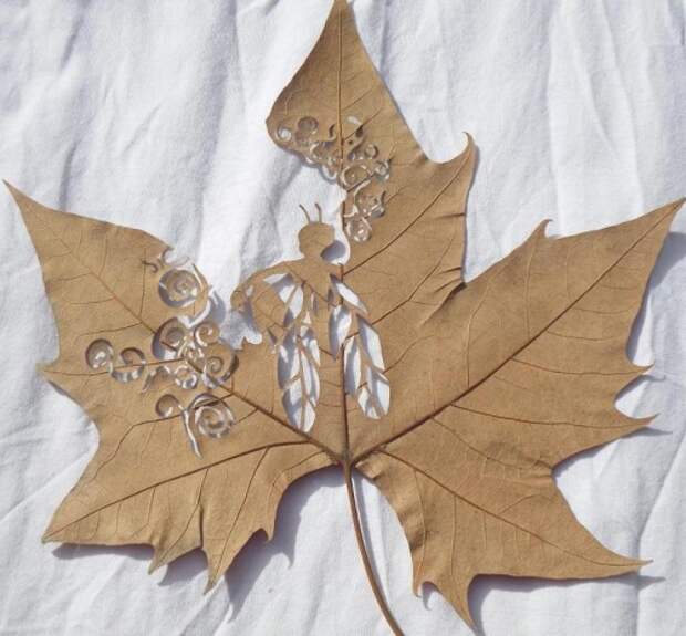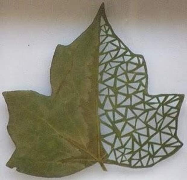 Художники становятся все более и более изобретательными в выборе холста. Лоренцо Дюрана выбирает идеальный листик, а затем моет, сушит, прессует и аккуратно вырезает все лишнее :)