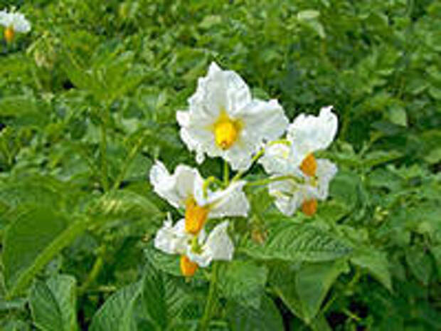 Баран отскочил в сторону и, как ни в чём не бывало принялся обьедать цветы ботвы картофеля.