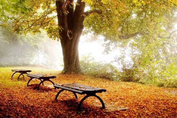 Тихо и уютно в парке золотистом. Шепчутся о чем-то напоследок листья.