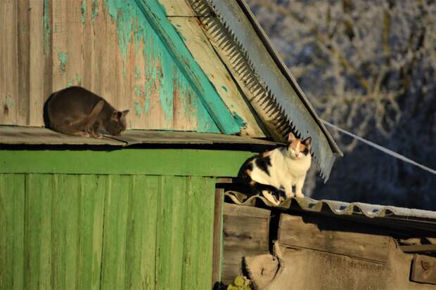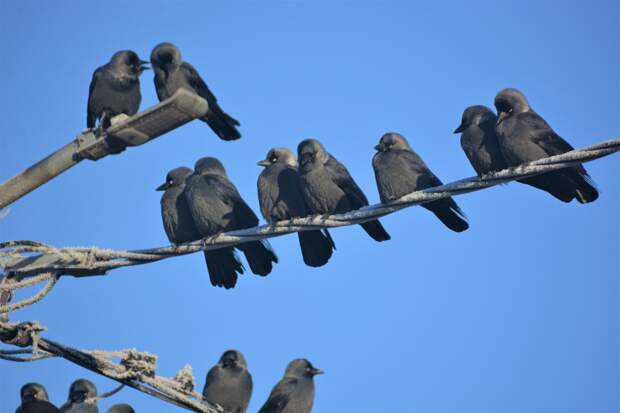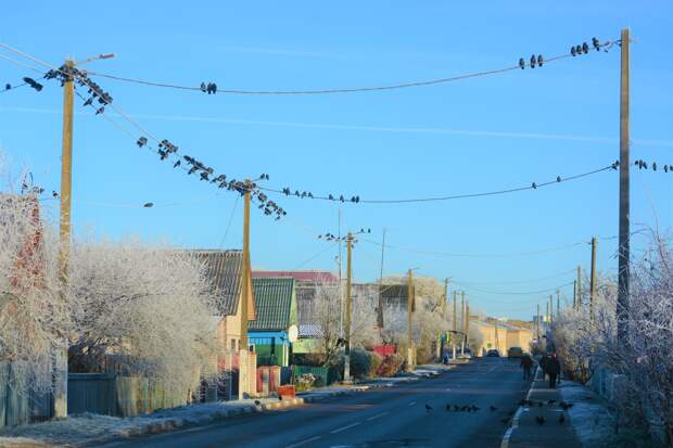 А на одной из улиц, среди утренней тишины, я встретил стаю галок. Недалеко от них раскинулся куст калины, яркие красные ягоды которого контрастировали с серыми и белыми тонами зимнего пейзажа.