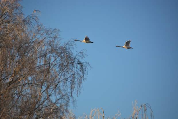Вскоре после того, как солнце начало подниматься выше, мое внимание привлекла пара лебедей, пролетающих над городом. Их грациозные фигуры на фоне голубого неба создавали ощущение волшебства, будто они пришли из другой реальности.