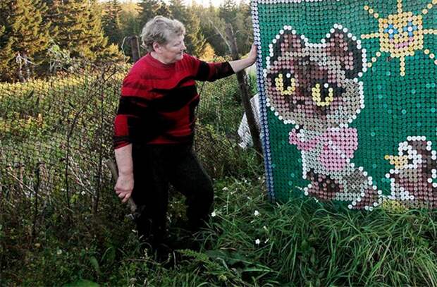 Сегодня на ее жилище приезжают полюбоваться гости со всей страны, а фотографии необычного дома разлетелись по всему интернету. А начиналось все с простого - Ольга Костина была увлеченным коллекционером, и собирала красивые яркие крышечки от бутылок. Когда же их собралось неприличное количество, то встал вопрос, куда девать это добро. Тогда пенсионерка и подумала, что выбрасывать коллекцию жалко, так почему бы не пустить ее в дело, и не соорудить полотно-мозаику, чтобы украсить свой двор. Так коллекция пластиковых крышек превратилась в масштабные гобелены и в таком виде перекочевала на стены и крышу деревянного деревенского дома.