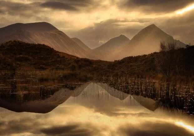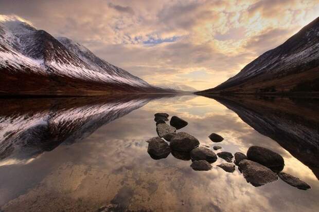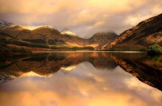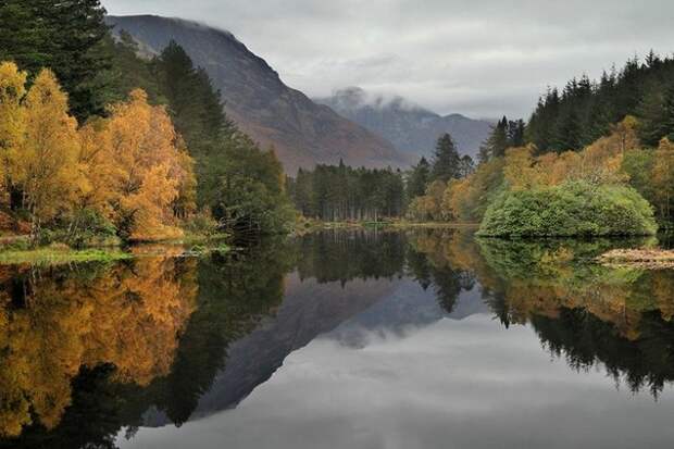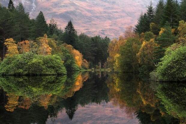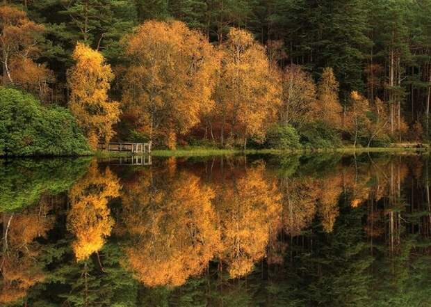 Путешествуя по Шотландии этой осенью, 46-летний фотограф-любитель Роджер Меррифилд (Roger Merrifield) решил сосредоточить свое внимание на озерах, которыми так богат край. Гладкая поверхность воды прекрасно отражает окрестный пейзаж, создавая иллюзию параллельных миров. По словам Меррифилда, его гипнотические фотографии требовали немало терпения, ведь подходящие погодные условия без туманов, дождей и сильных ветров бывают на Туманном Альбионе редко.